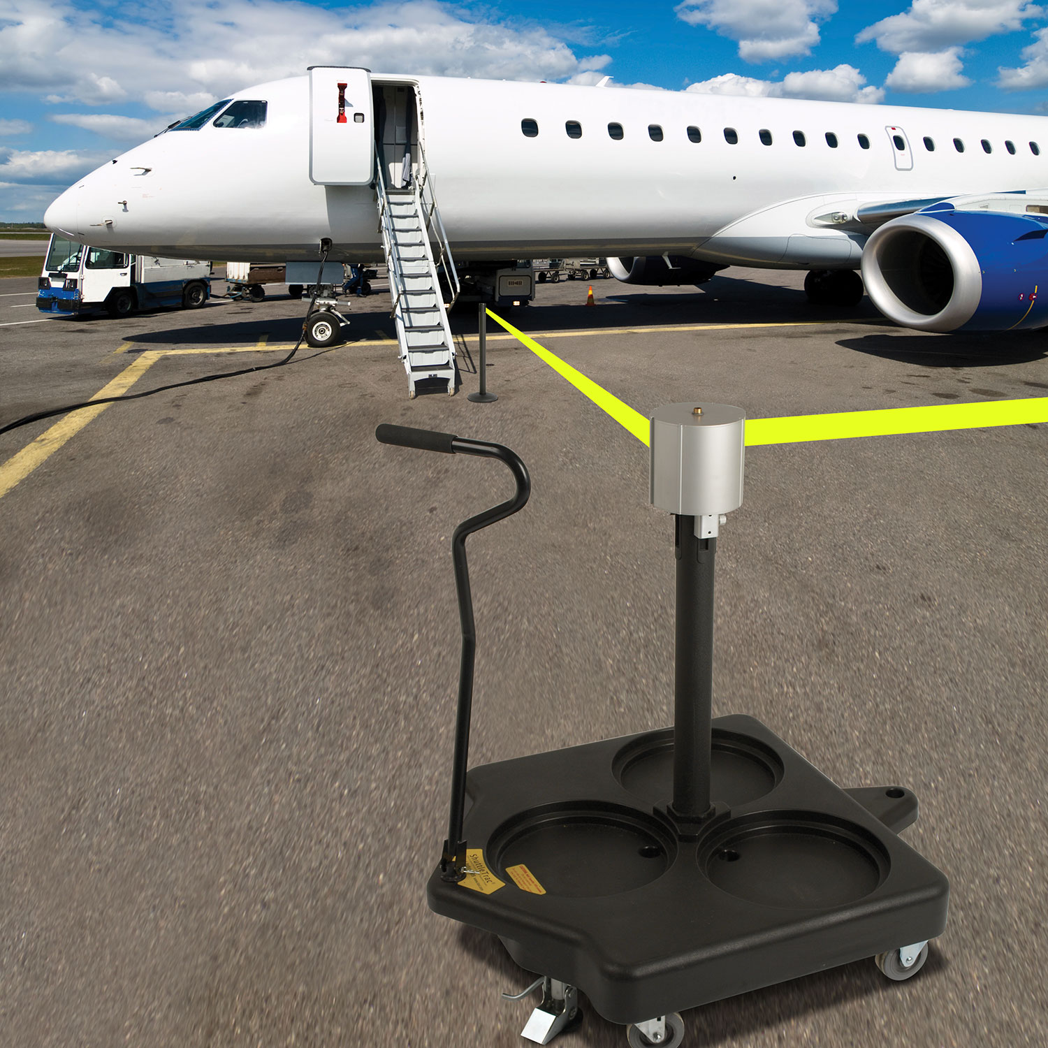Easily and quickly block off large areas with the industry’s longest retractable belt. JetTrac’s portability makes it easy to deploy and to store. In fact, a single person can cordon off a huge area in just minutes. Includes one 65-foot-long retractable belt with spaces for and additional 3 JetTrac Satellite posts, for a total coverage of 260 linear feet. Perfect for tarmac and terminal safety as well as for Stadiums, Arenas, Parking Garages/Lots, Convention Centers, and any large area.