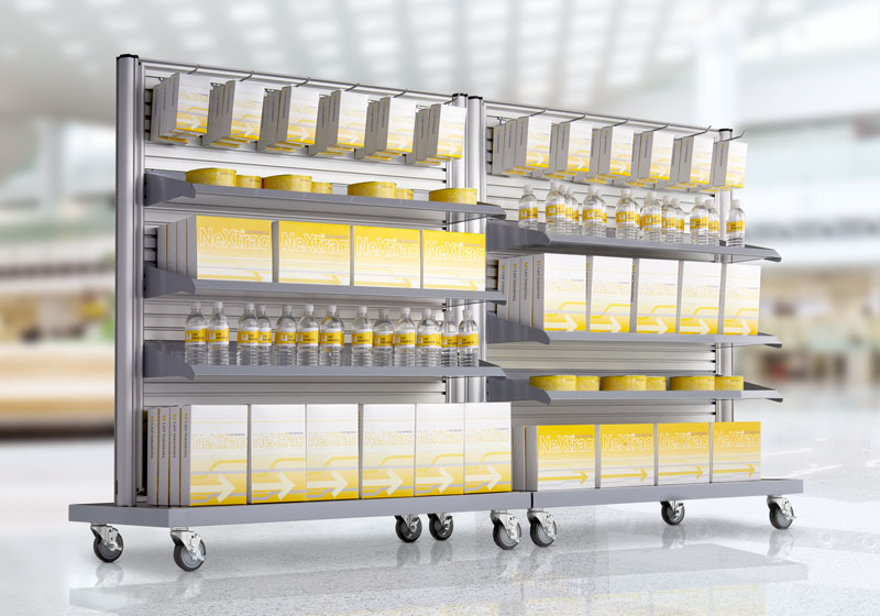 Use NeXtrac Gondolas as stand-alone displays to highlight seasonal merchandise in high-traffic areas.